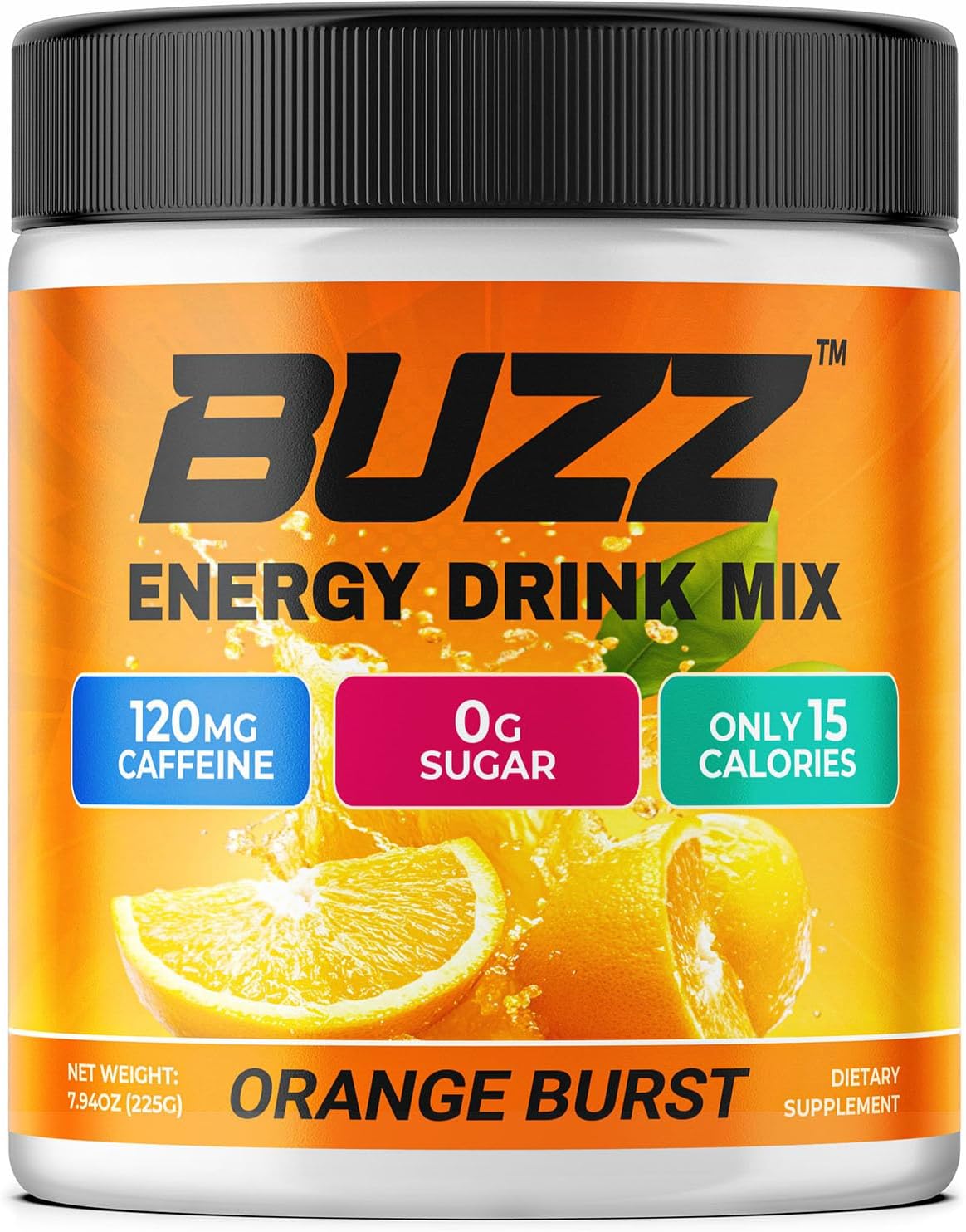 Morning Buzz Sports Energy Drink Mix by New Health, Pre Workout, Sports Nutrition Drink, Supports Lasting Energy, Endurance, Mental Clarity and Metabolism, 8 Ounce Powder Mix, 30 Servings Orange Burst